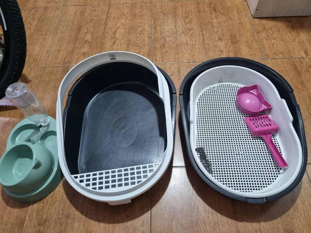 Só esta com uma avaria, Kit completo para o seu gato! Inclui comedouro e bebedouro práticos, além de uma caixa de areia funcional com peneira e pazinha. Mantenha seu felino feliz e o ambiente limpo com este conjunto essencial.