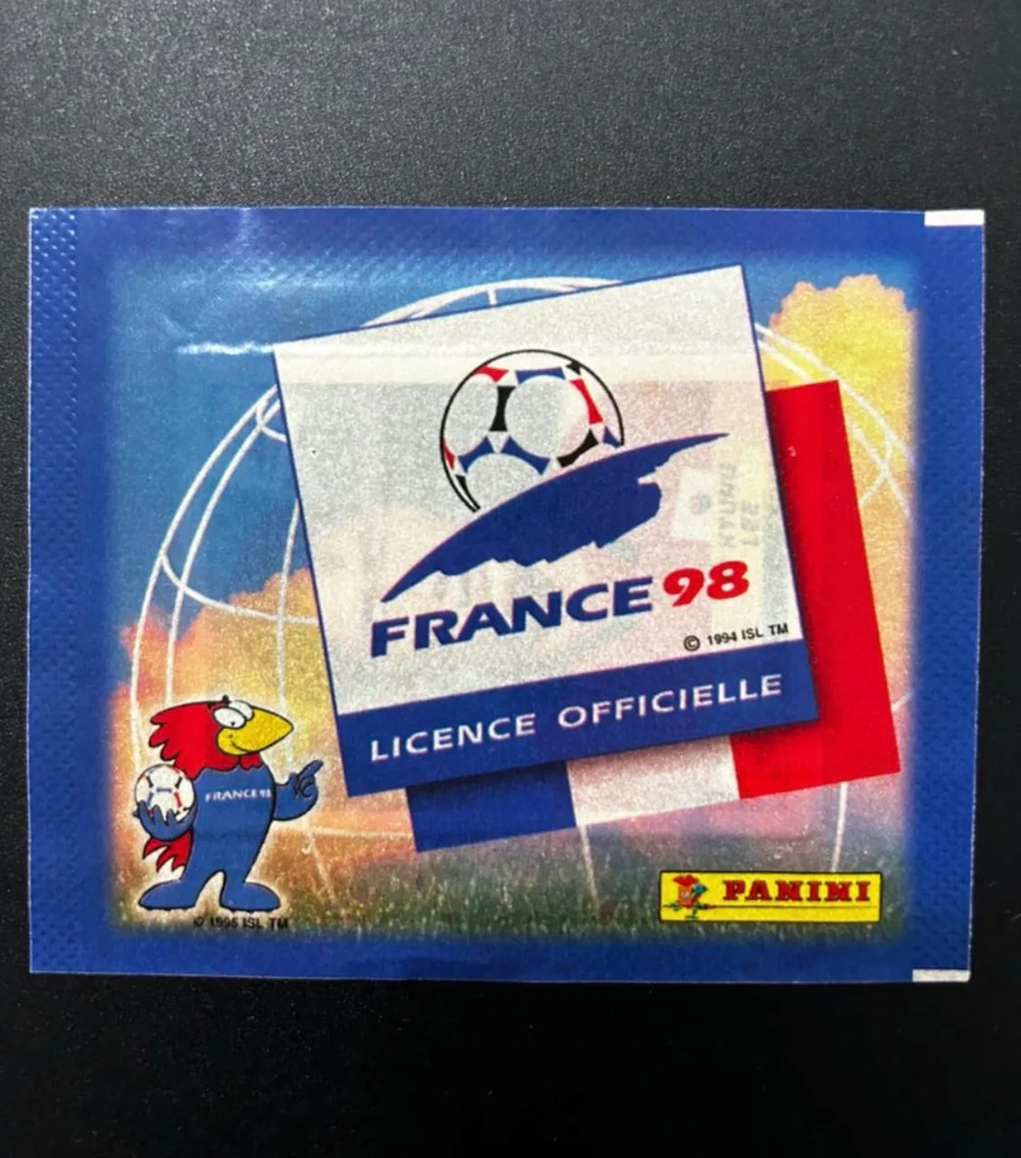 Pacote lacrado de figurinhas da Copa do Mundo de 1998 verso Danone.