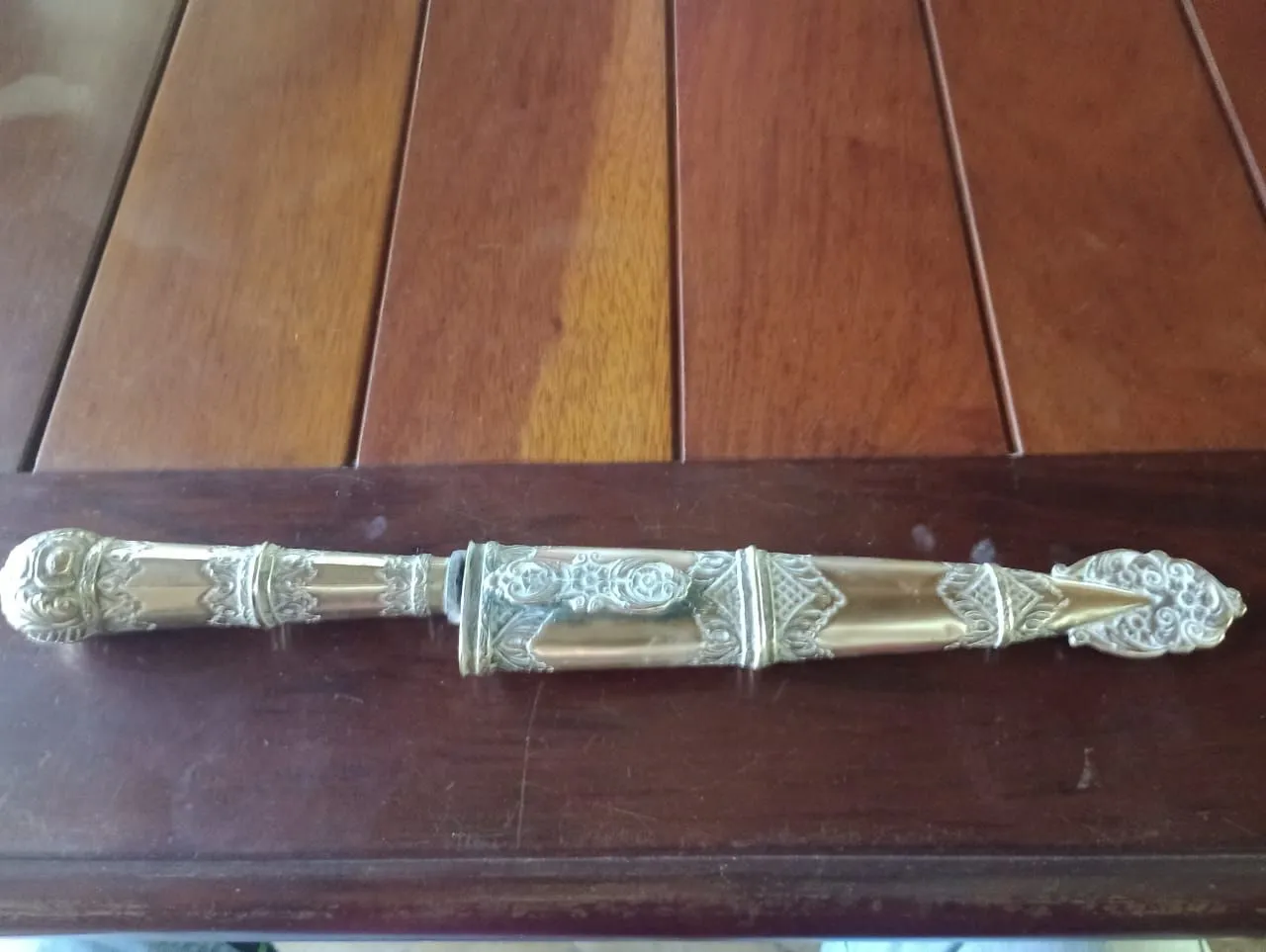 Uma bela peça antiga, um objeto de colecionador. Uma adaga ornamental com detalhes intrincados e um design elegante. Perfeito para colecionadores de antiguidades e entusiastas de itens históricos.