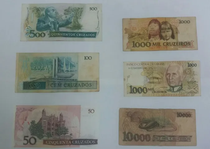 São três cédulas de Cruzados e três de Cruzeiros. Bom estado de conservação.