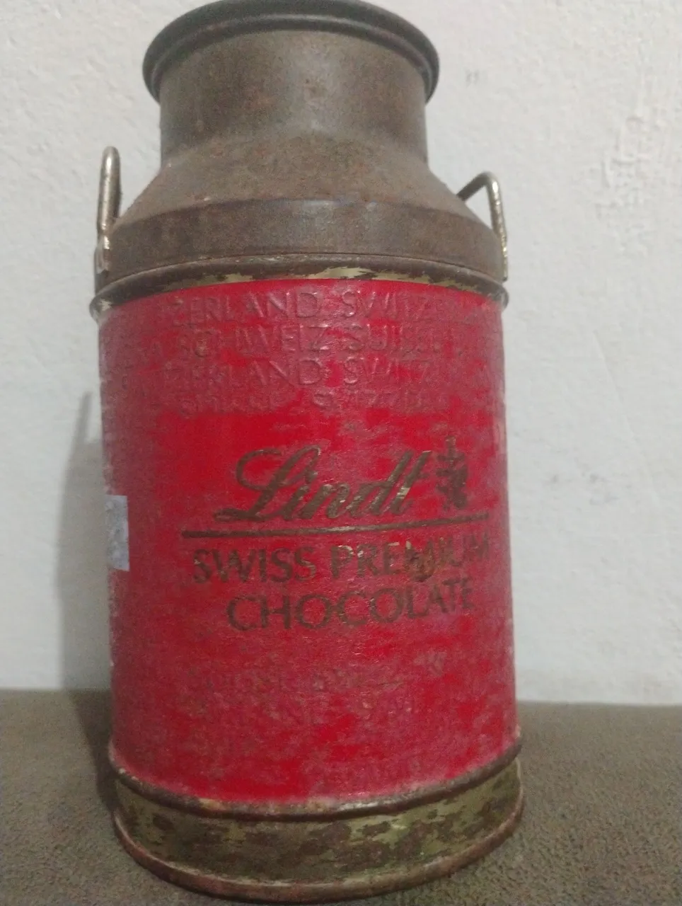 Linda lata de chocolate Lindt Swiss Premium Chocolate, um item antigo e colecionável. Perfeita para colecionadores e amantes de antiguidades. Uma peça única para sua coleção!