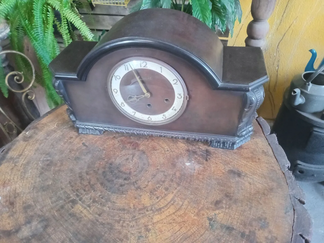 Lindo relógio de mesa vintage, com design clássico e detalhes ornamentados. Perfeito para adicionar um toque de elegância e história à sua decoração. Um objeto de colecionador que atrai olhares. Peça que transmite personalidade e requinte ao ambiente.