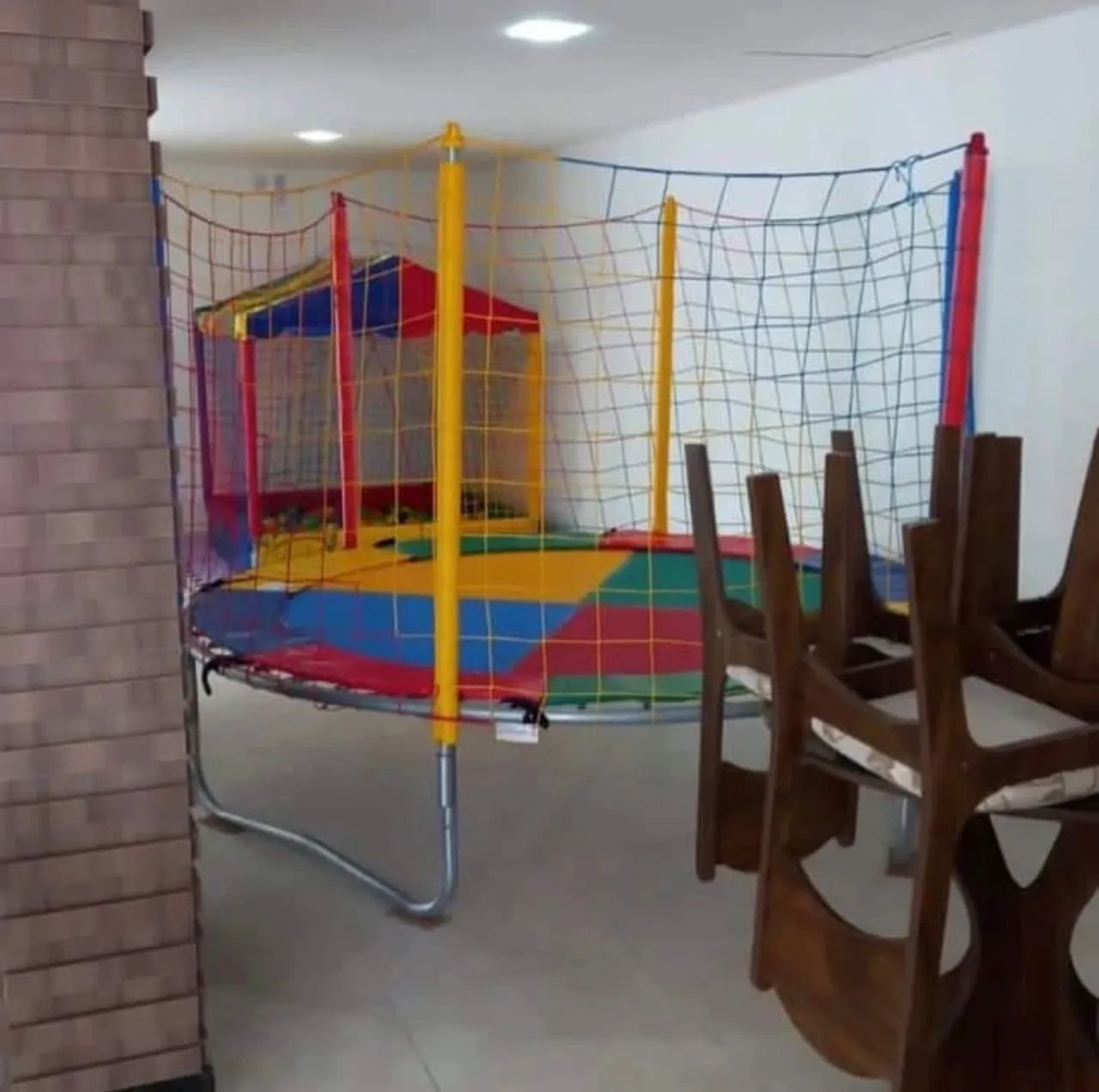 Cama elástica pula pula colorida para a diversão da criançada! Perfeita para gastar energia e garantir momentos de alegria e brincadeiras.
