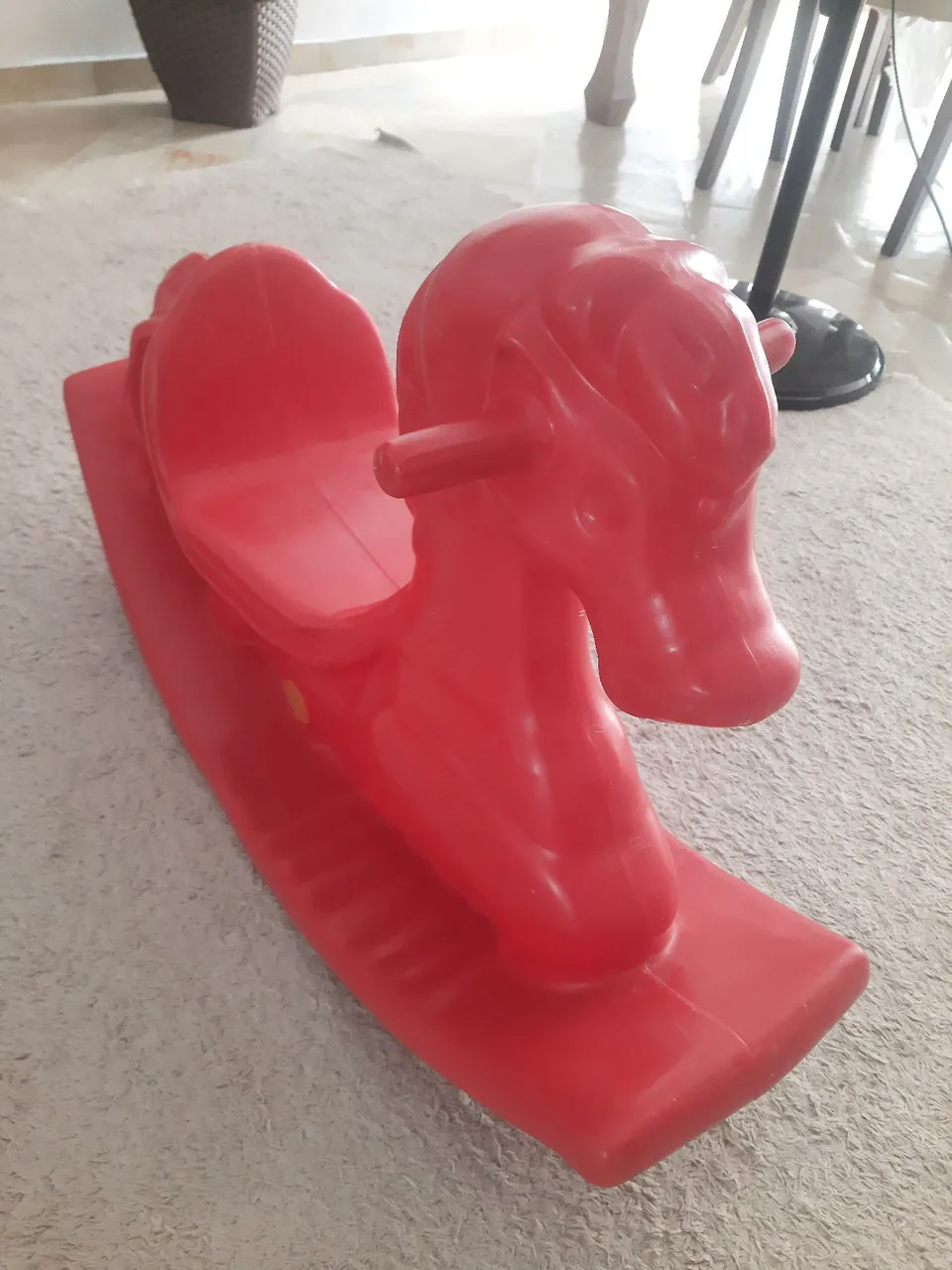 Cavalinho de plástico vermelho, perfeito para a diversão das crianças! Um brinquedo clássico que estimula a imaginação e a coordenação motora dos pequenos.