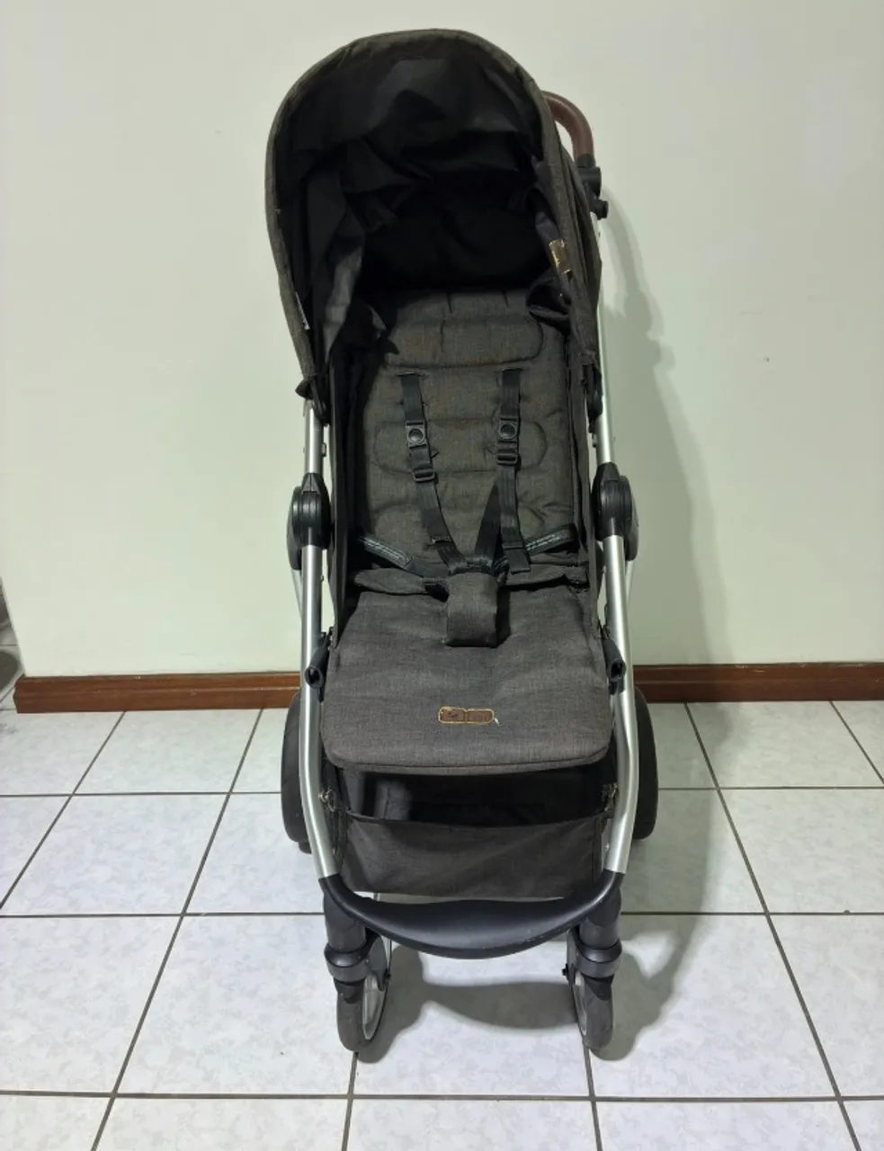 O modelo Mint é um carrinho de bebê importado da Alemanha e ultracompacto com rodas giratórias 360°, assento reclinável para uso desde recém-nascido e suporta até 22 kg segundo as normas europeias.