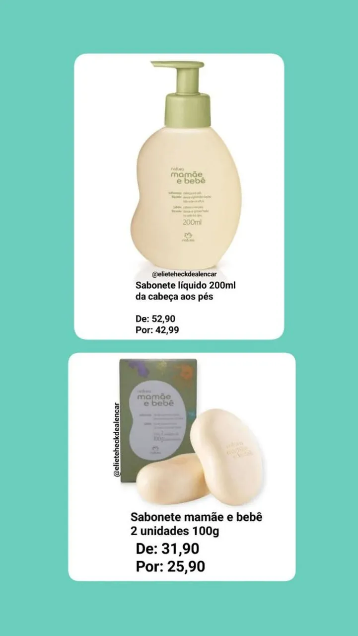 Promoções natura mamãe e bebê Valores nas fotos