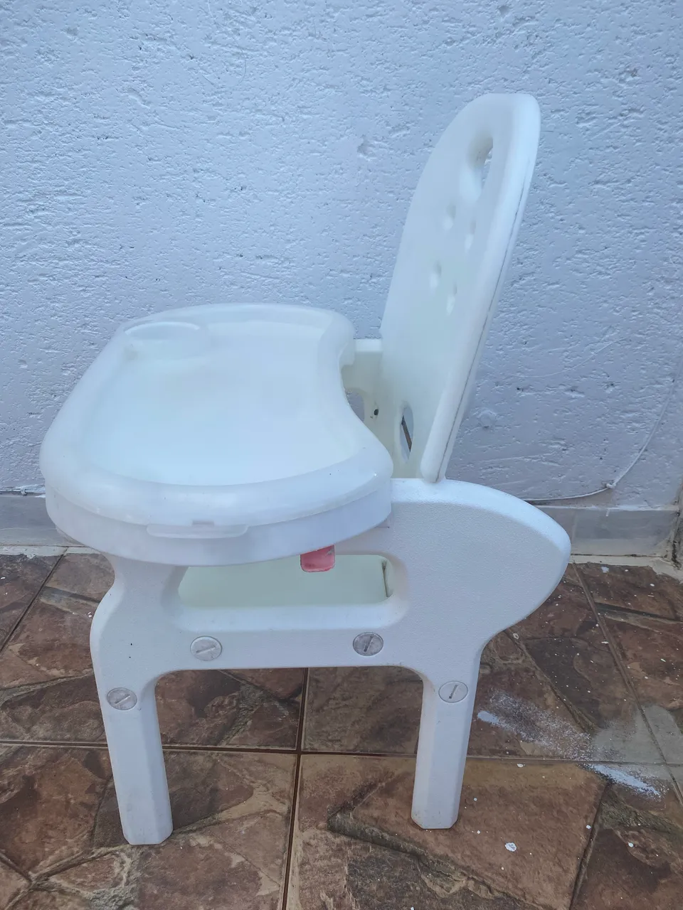 Cadeira de alimentação infantil branca, perfeita para as refeições do seu bebê! Design prático e seguro, ideal para o dia a dia.