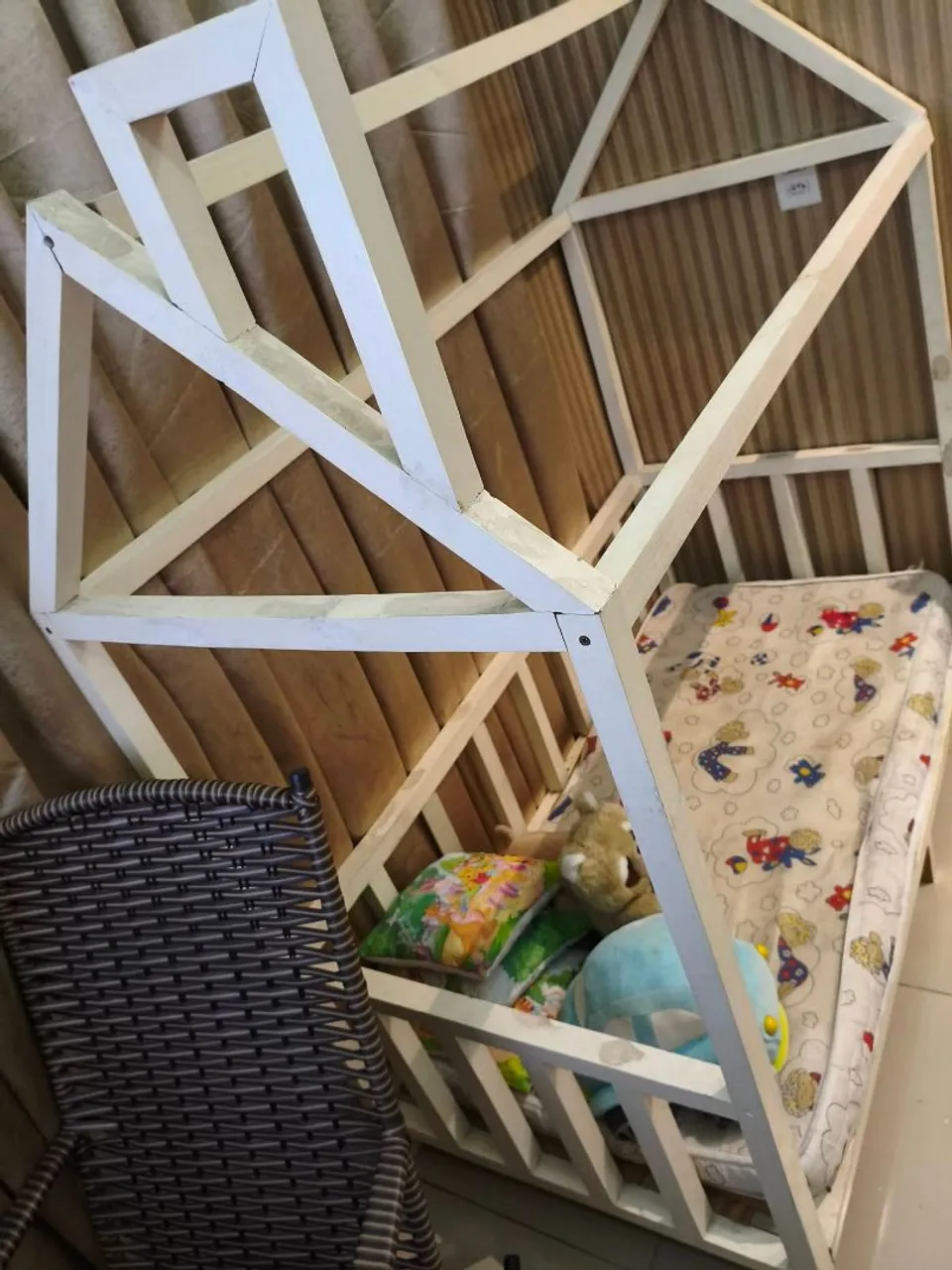 Cama infantil em formato de casinha, perfeita para o quarto do seu filho! Design moderno e divertido, com estrutura resistente e pintura branca. Proporcione noites de sono tranquilas e um ambiente lúdico para as crianças.