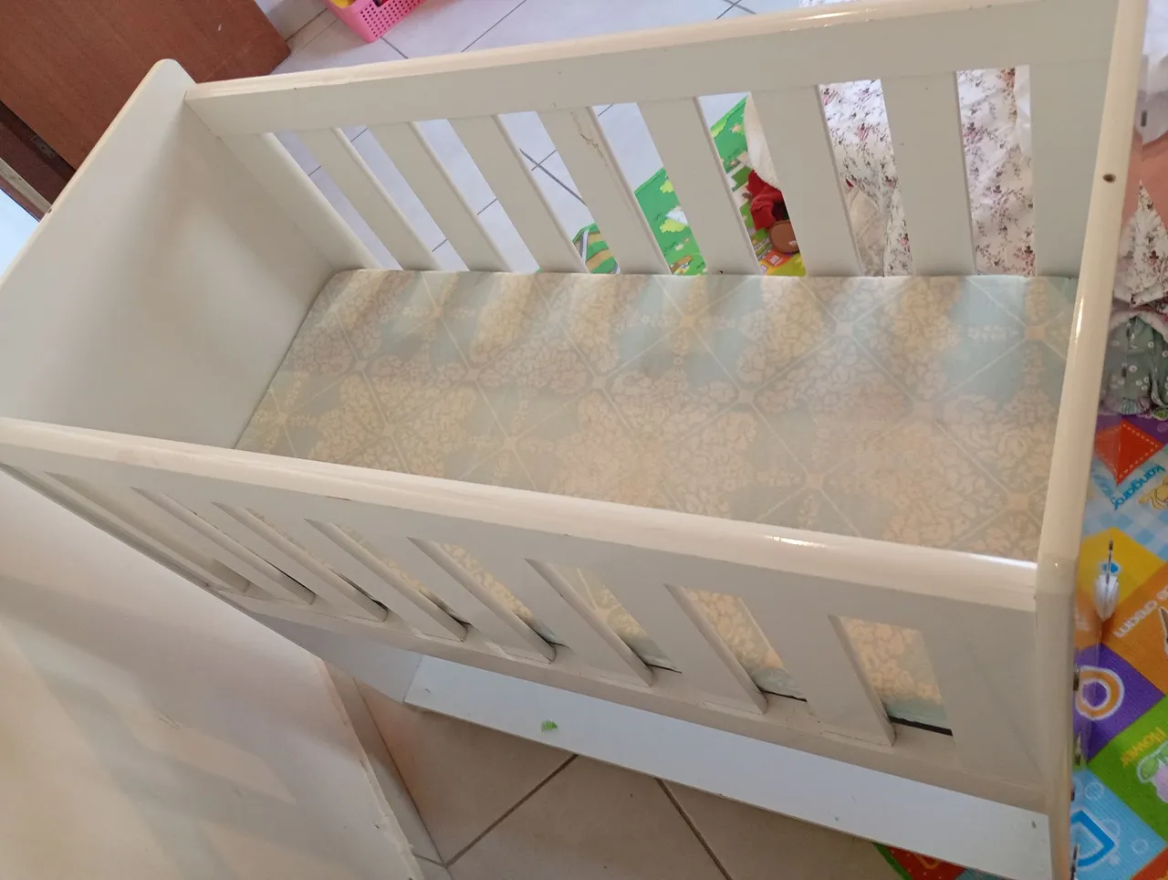 Também possui ferro de suporte para mosquiteiro e acompanha colchão infantil