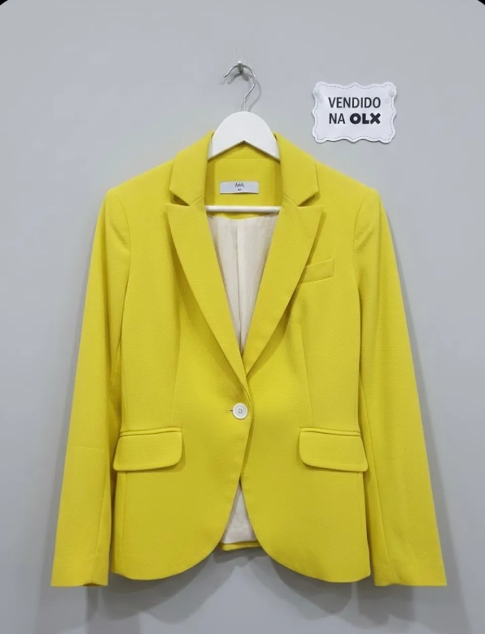 Blazer amarelo vibrante perfeito para diversas ocasiões, ele traz um toque de estilo e elegância ao visual. Combine com diferentes peças e crie looks incríveis!