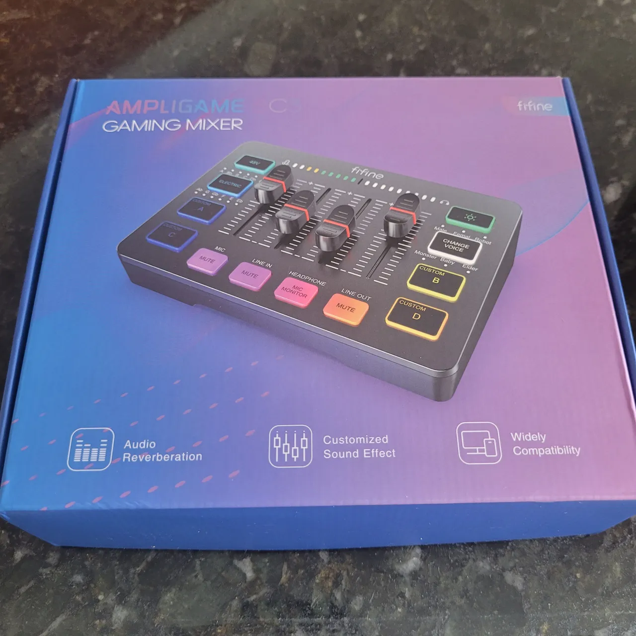 Mixer de áudio FIFINE Ampligame SC3 NOVO, nunca usado, e em perfeitas condições. Essencial para streamers, gamers e podcasters que buscam controle de áudio profissional, efeitos de voz e personalização de sound effects.