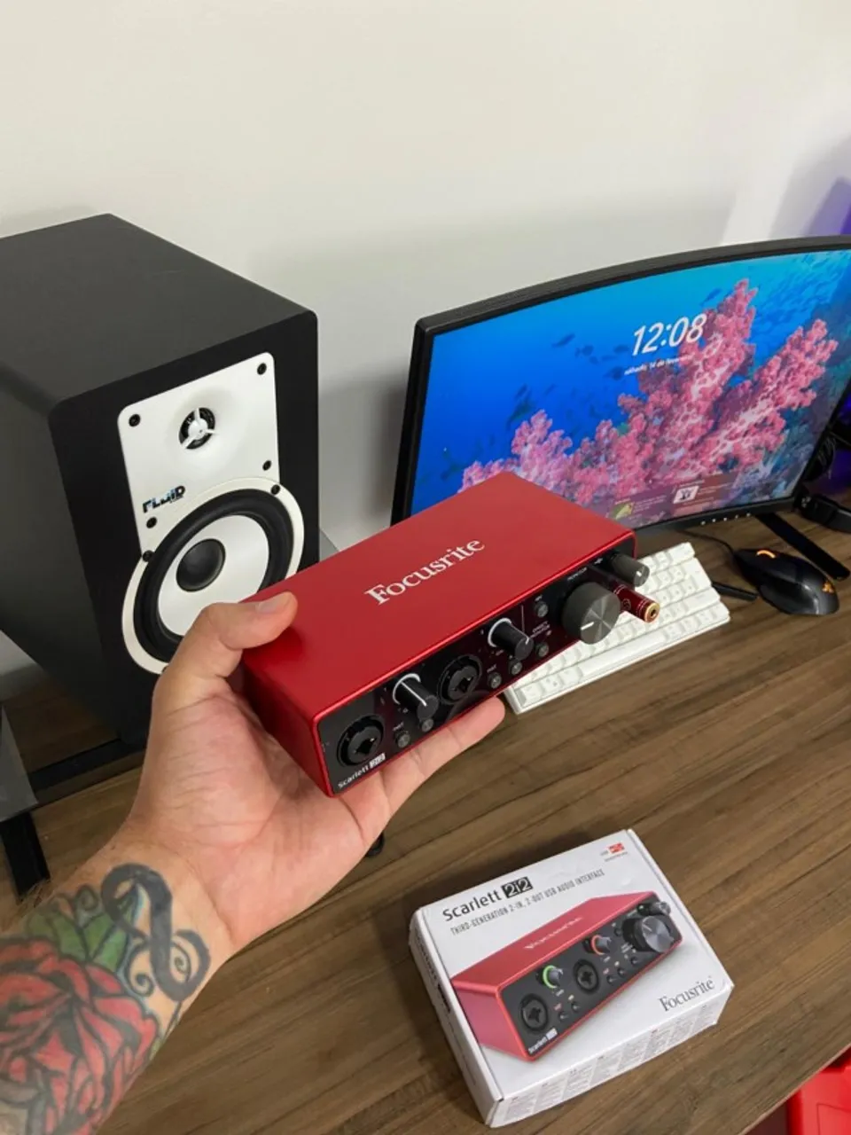 Interface de áudio Focusrite Scarlett 2i2 3rd Gen, perfeita para gravações com qualidade profissional. Capture vocais e instrumentos com clareza e precisão. Ideal para músicos, podcasters e produtores que buscam excelência sonora.