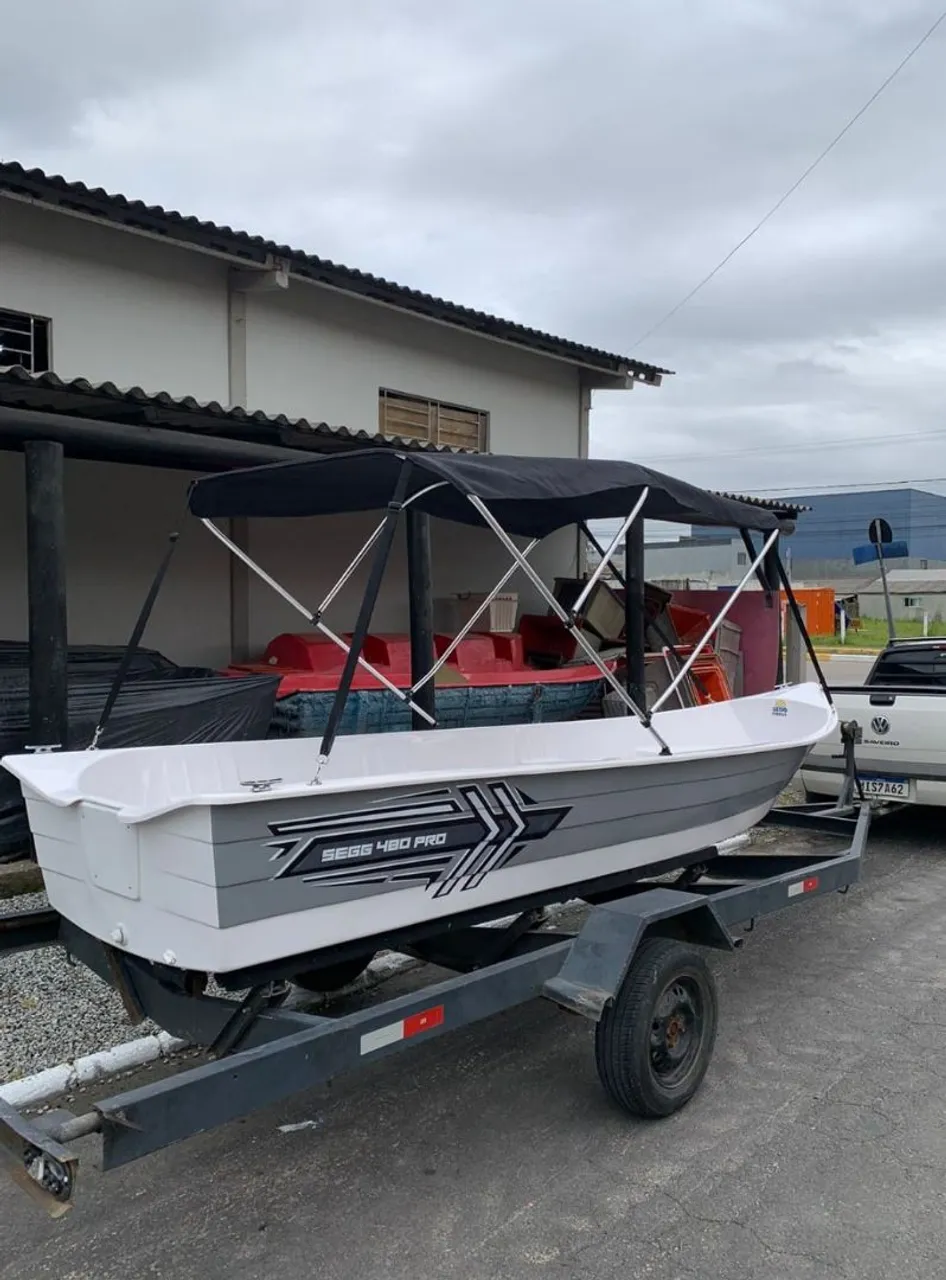 Barco 4,8 metros. Motor Mercury 15HP. 1hora de uso. Acompanha Carretinha de Encalhe e Carrinho suporte do motor. Ano 2026.