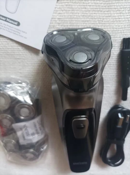 Cabeçote de corte flutuante independente 3D com três conjuntos de cabeças que aumentam em até 1/3 a área de barbear em relação aos modelos comuns. Cada cabeça tem lâminas duplas ultrafinas e afiadas, com toque suave e verniz elástico, adaptando-se perfeitamente aos contornos do rosto e dobrando a eficiência do corte.