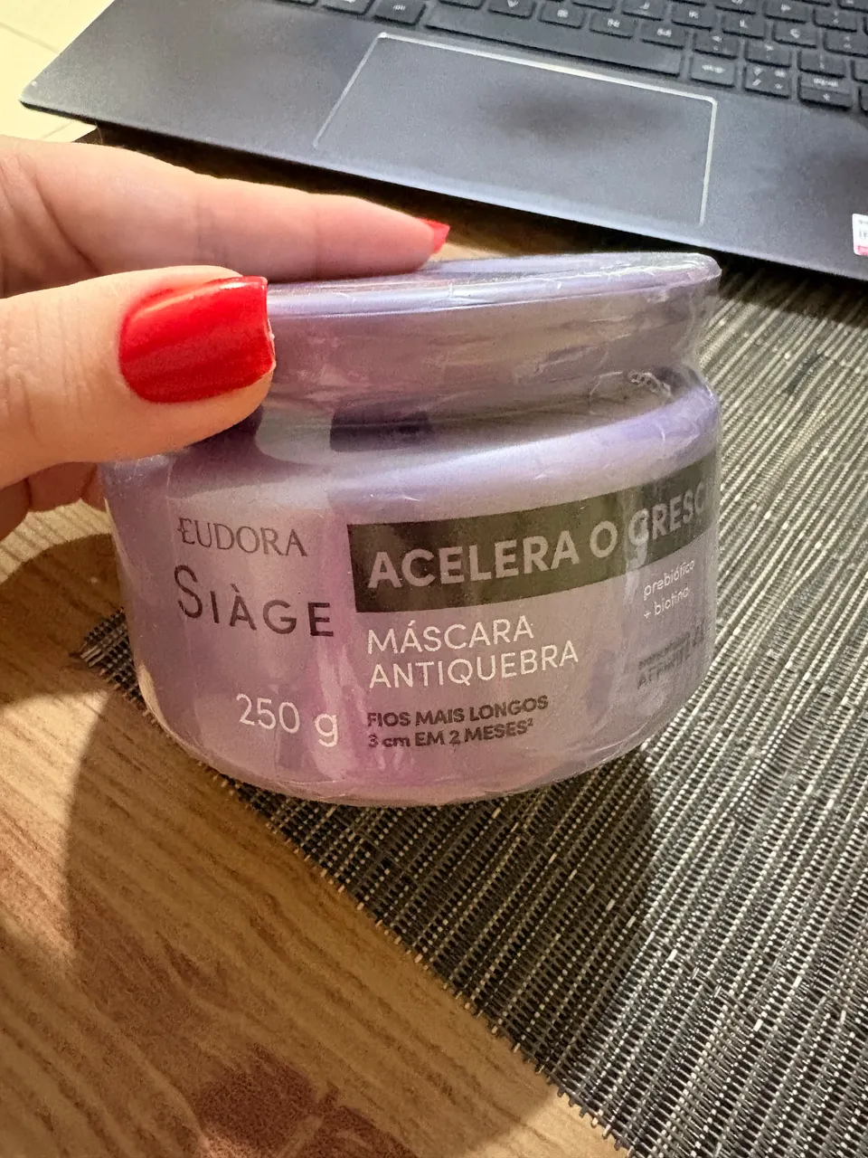 A Máscara Capilar Siàge Acelera o Crescimento de Eudora é perfeita para quem busca cabelos mais longos e fortes. Sua fórmula com prebiótico e biotina acelera o crescimento em até 3cm em 2 meses, além de combater a quebra e fortalecer os fios. Tenha cabelos saudáveis, com brilho e comprimento que você sempre sonhou!