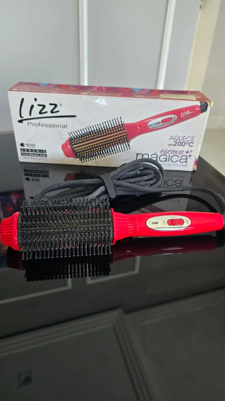 Tenha cabelos lisos e volumosos com a escova alisadora Lizz Professional! Com tecnologia cerâmica e tourmaline, ela aquece até 200°C, proporcionando um liso perfeito e volume incrível. Experimente a escova mágica e conquiste um visual impecável!