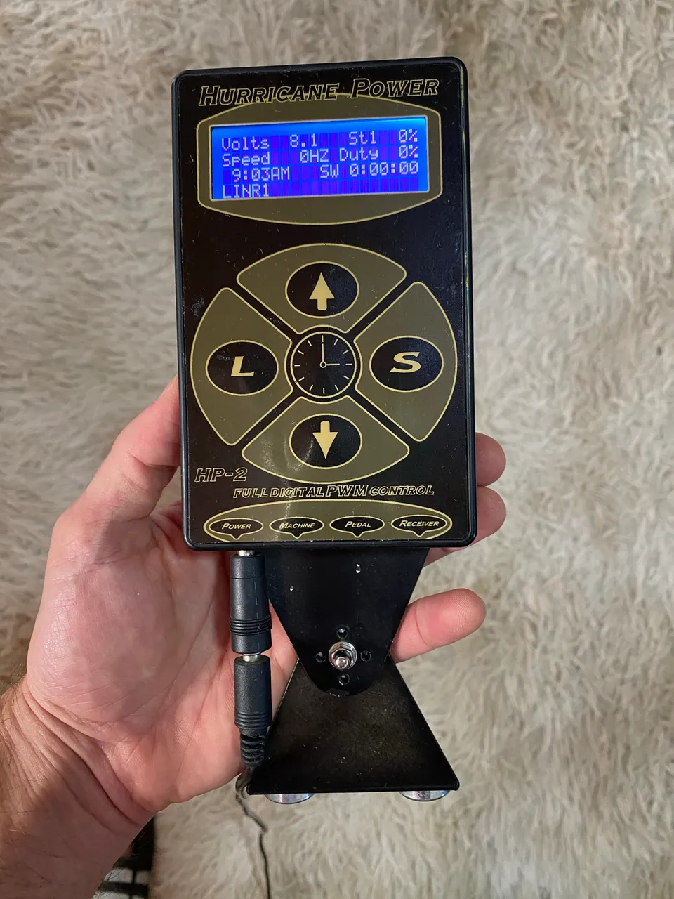 Controladora digital para máquina de tatuagem, leve e eficiente. Possui tela digital com diversas funções.