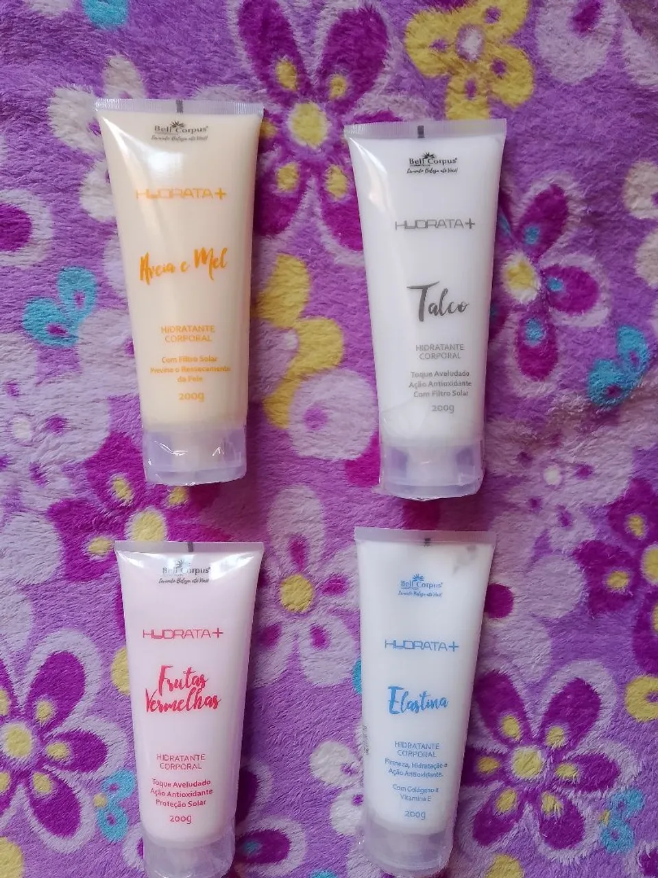Hidratante corporal Bell Corpus, perfeito para uma pele macia e protegida. Com toque aveludado e ação antioxidante, desfrute da combinação de Aveia e Mel, Talco, Frutas Vermelhas ou Elastina. Hidratação com filtro solar!