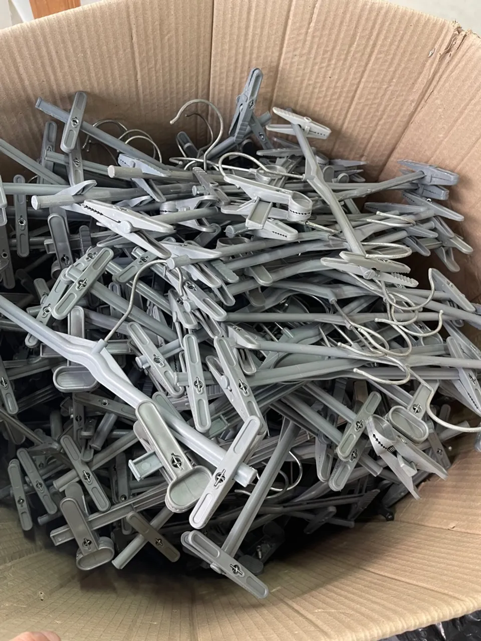 Kit de cabides cinza com prendedor. Ideal para organizar suas calças, saias e shorts. Prático e resistente, otimiza o espaço do seu guarda-roupa. Perfeito para organização e praticidade!