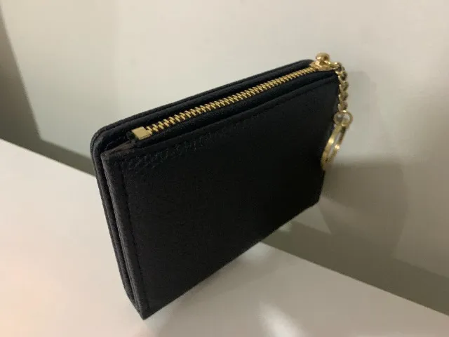 Charmosa carteira preta com zíper e chaveiro dourado, perfeita para carregar seus pertences com estilo e praticidade. Design elegante e acabamento impecável!