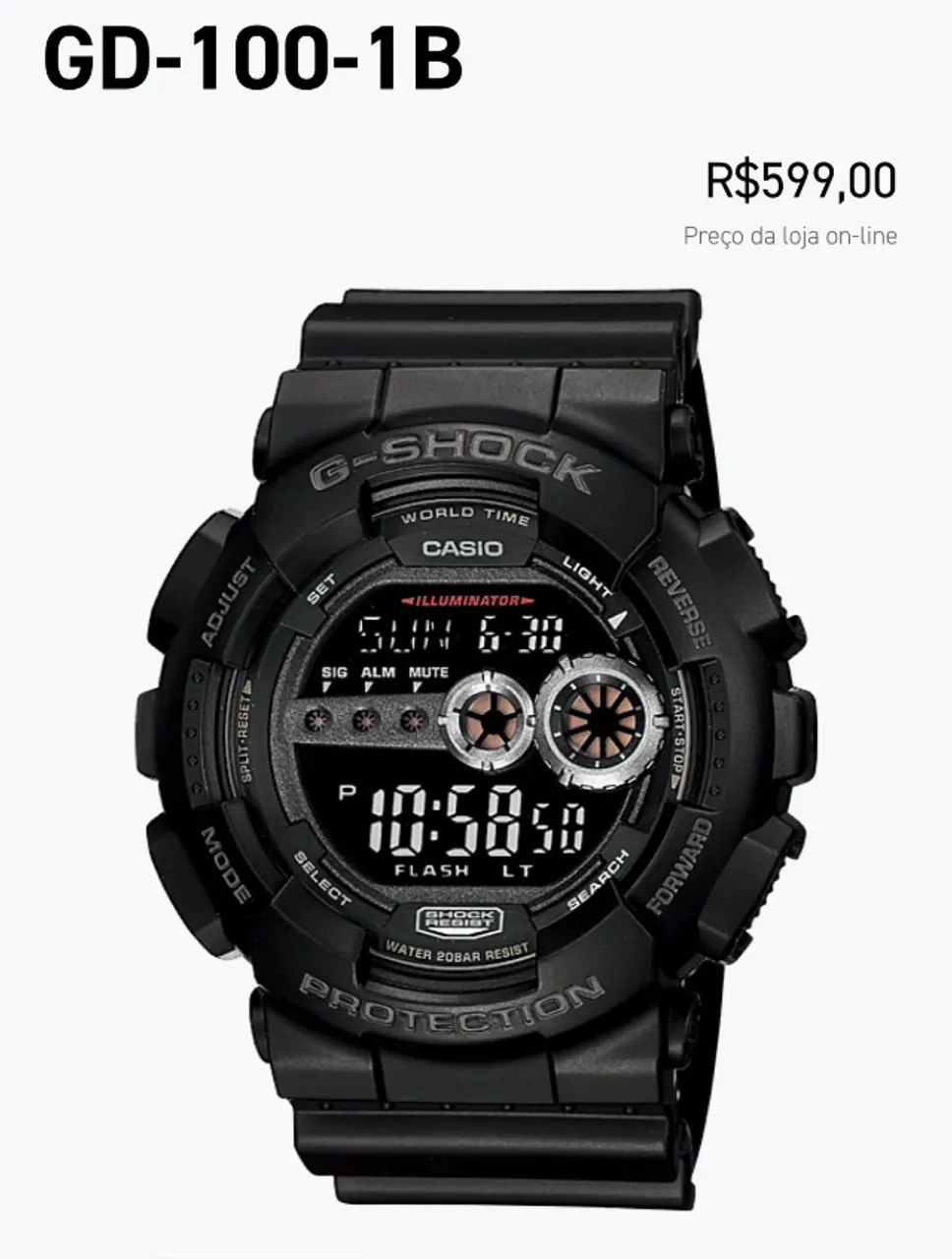 Relógio Casio G-Shock GD-100-1BDR, perfeito para quem busca estilo e resistência. Com design moderno e funções incríveis, este relógio é ideal para o dia a dia e para atividades esportivas. Não perca essa oportunidade!