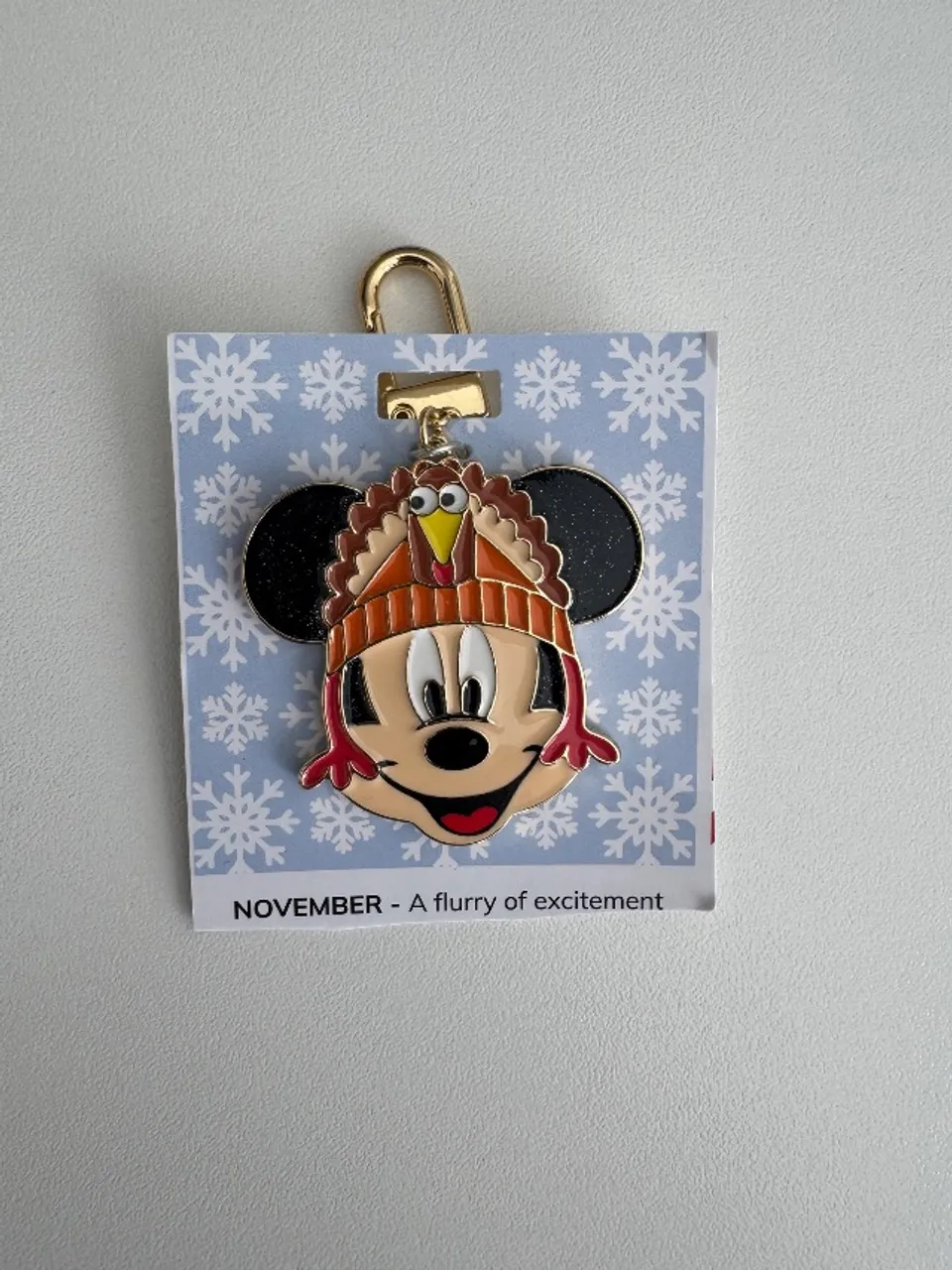 Este é um chaveiro ou pingente de bolsa do Mickey Mouse, da marca BaubleBar, com tema de Ação de Graças (Thanksgiving) ou outono.