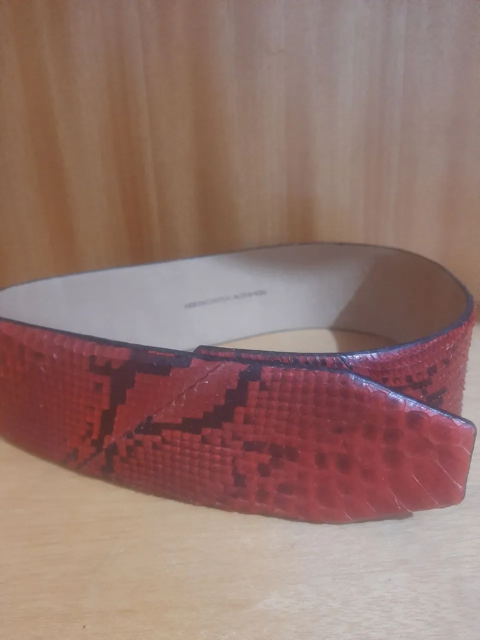 Cinto vermelho com textura de cobra, um acessório que adiciona um toque de ousadia e sofisticação ao seu visual. Perfeito para complementar qualquer look com estilo e personalidade.Ambos em couro, 50 cada, importados, nunca usados