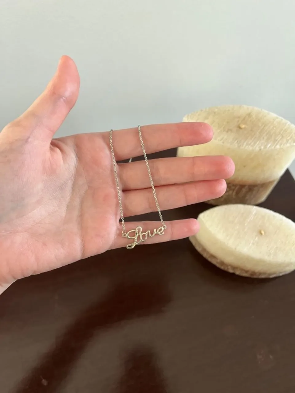 colar de bijuteria com escrito love