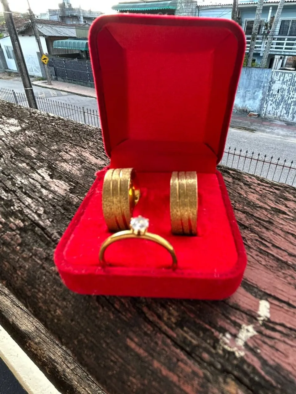Lindo par de alianças para celebrar momentos especiais! Design elegante e sofisticado, perfeito para simbolizar o amor e a união?