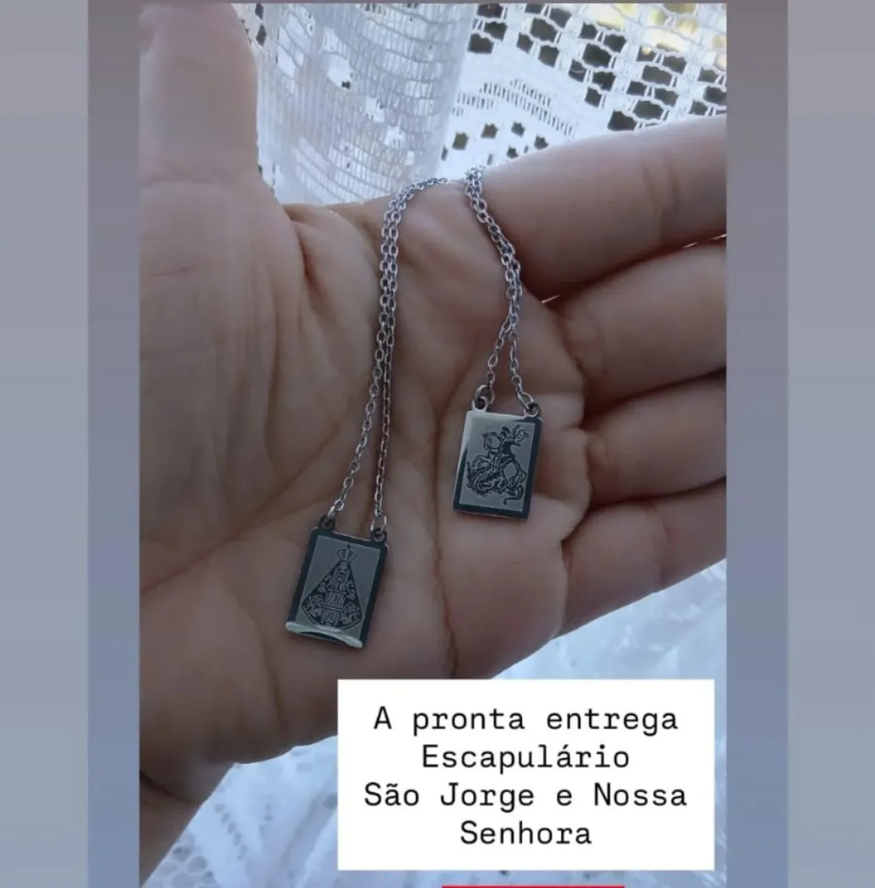 Lindo escapulário de São Jorge e Nossa Senhora. Um acessório perfeito para expressar sua fé e devoção com estilo!