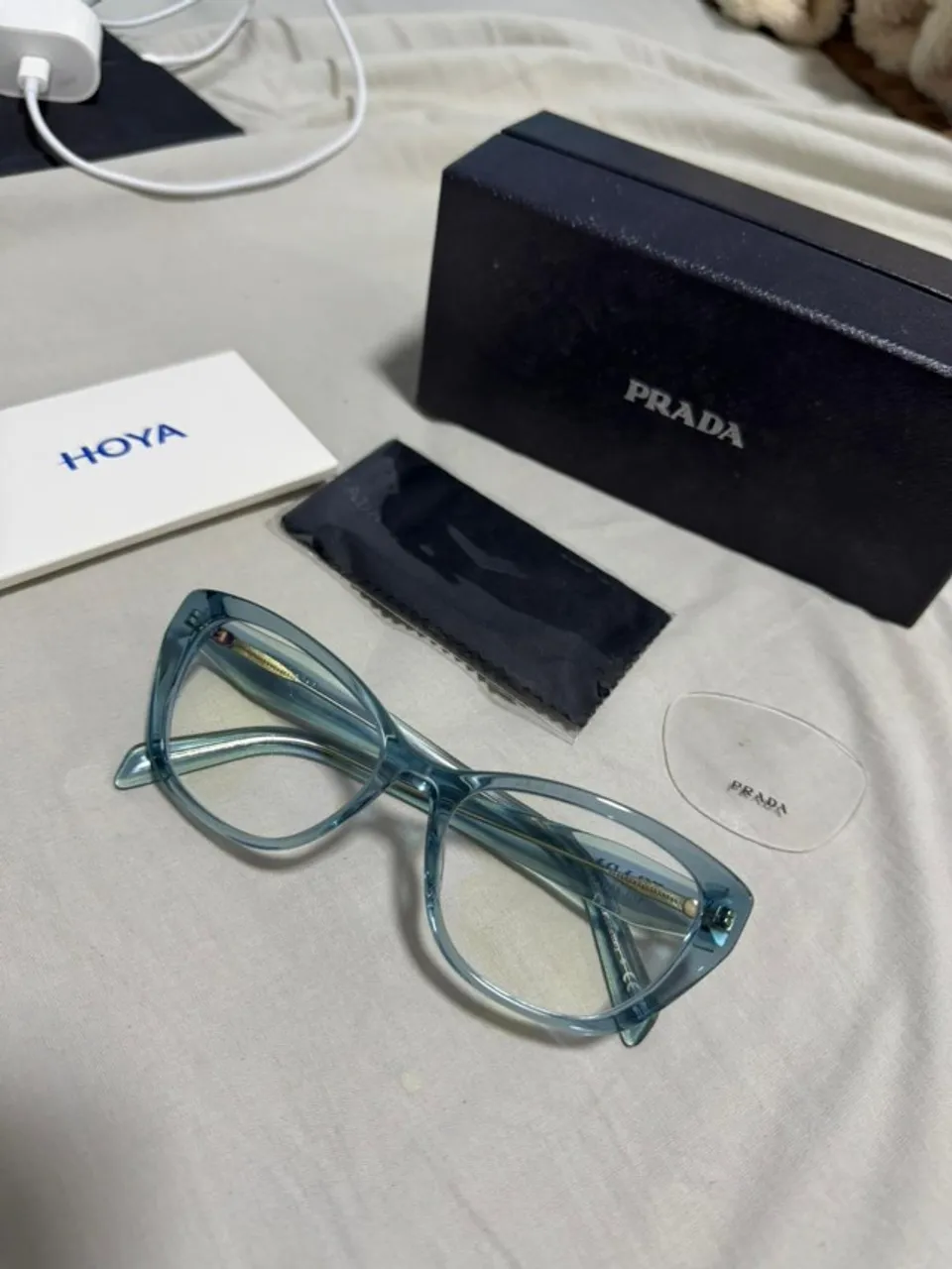 Vendo óculos Prada original, armação de grau feminina, em acetato azul translúcido, modelo elegante e atemporal, ideal para uso diário ou ocasiões especiais.