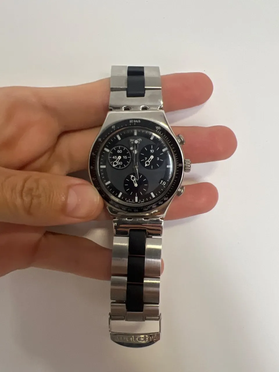 Relógio Swatch estiloso e elegante para complementar seu visual. Design moderno e funcionalidade impecável para você marcar presença em qualquer ocasião.