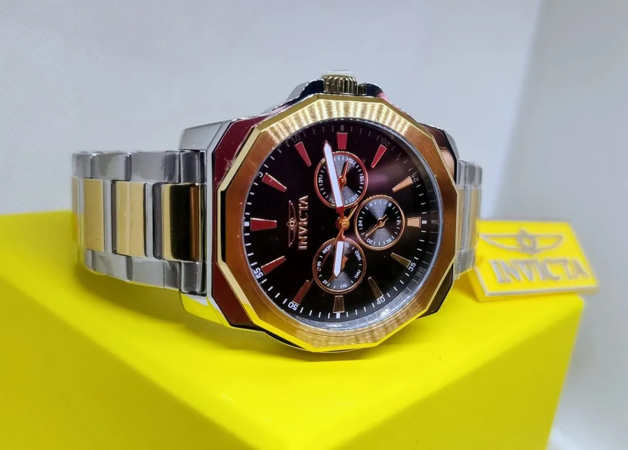 Relógio Invicta elegante e sofisticado, perfeito para complementar seu estilo com um toque de classe. Design moderno e marcante, ideal para quem busca um acessório que une funcionalidade e beleza.