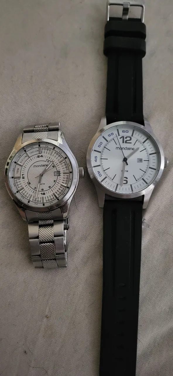 Par de relógios Mondaine, um de pulseira de aço e outro de pulseira de borracha. Ambos em perfeito estado de conservação 150 cada um