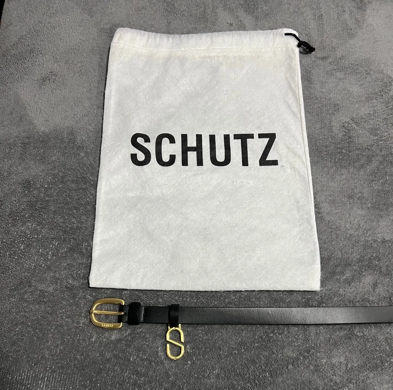 Cinto Schutz, cor preta, TAM M veste P/M em couro legítimo. Detalhe banhado em metal dourado. Perfeito para complementar looks de festa ou do dia a dia.