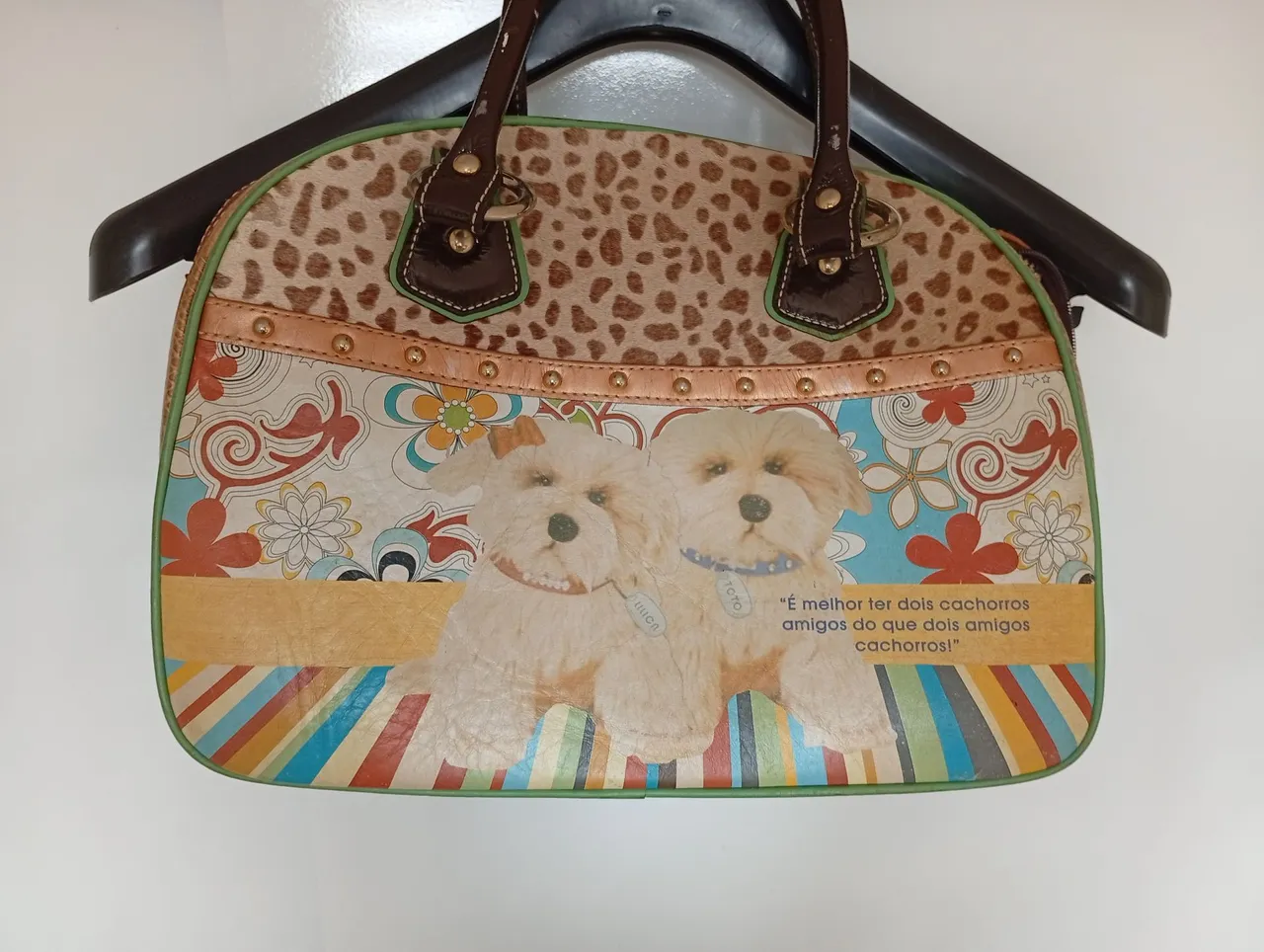 Linda bolsa de mão com design exclusivo e alegre, perfeita para quem ama cachorros e um visual cheio de personalidade! Altura 24cm Largura 34cm