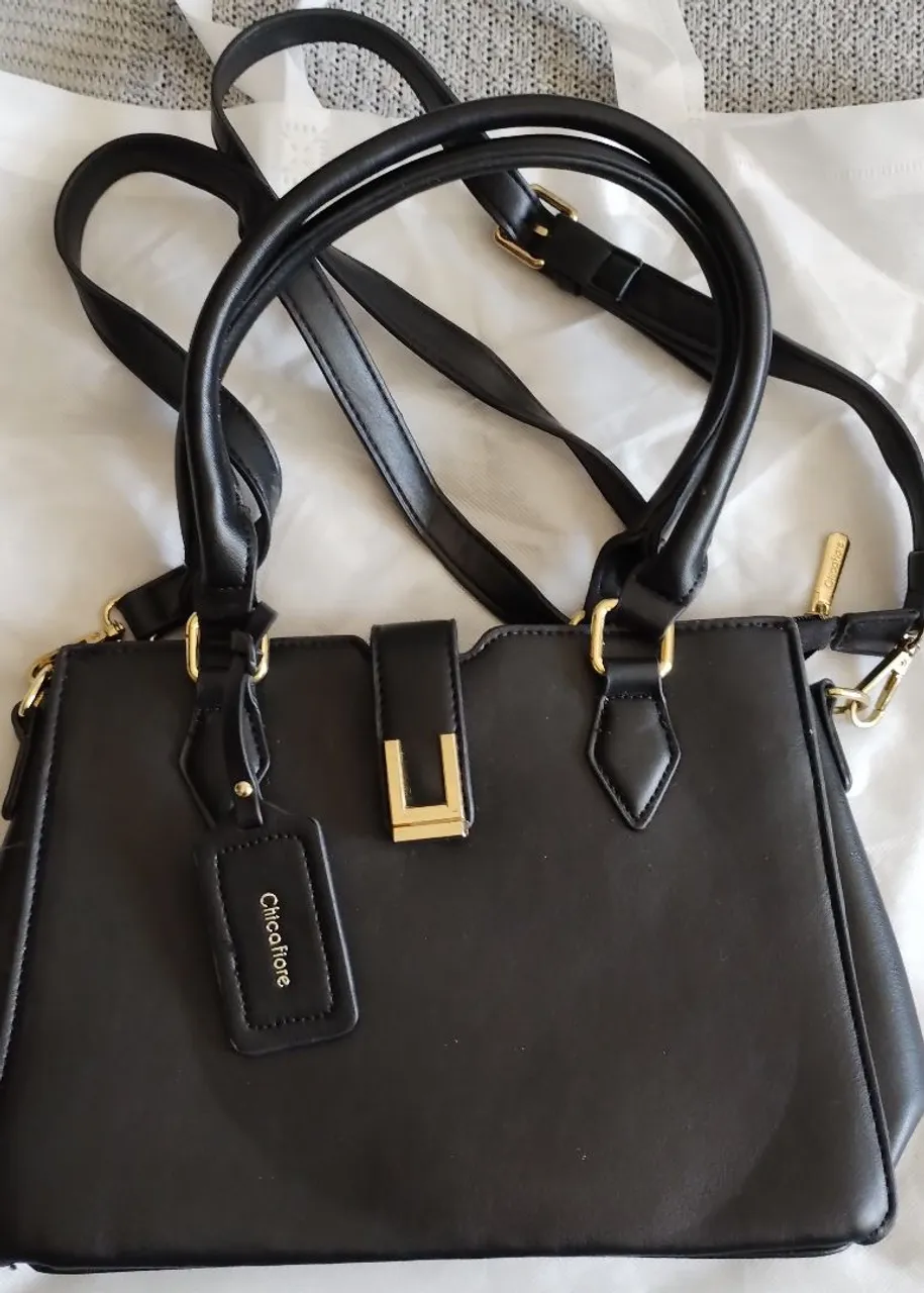 Linda bolsa preta Chicofiore, elegante e versátil. Perfeita para diversas ocasiões, com design moderno e detalhes sofisticados. Possui alça de mão e alça transversal.