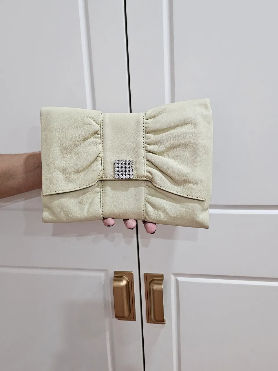 Linda bolsa clutch Banana Republic na cor bege off white. Perfeita para complementar seu look com elegância e sofisticação. Design moderno e acabamento impecável, ideal para diversas ocasiões.