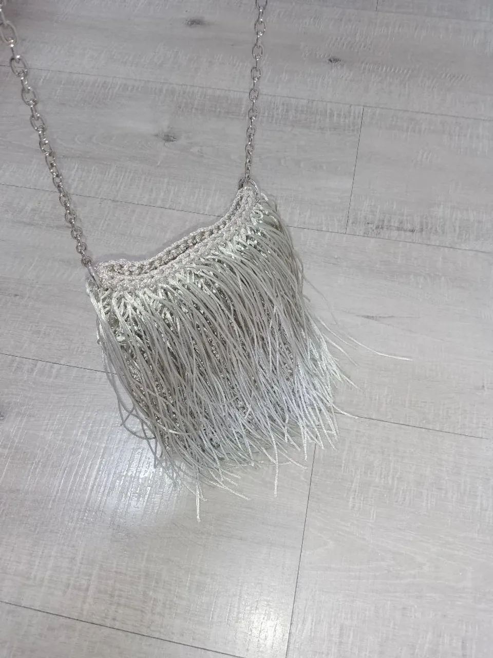 Cluth de crochê com franjas em fio de Seda Prata-dublin foi pago 400,00 vendo por 200,00