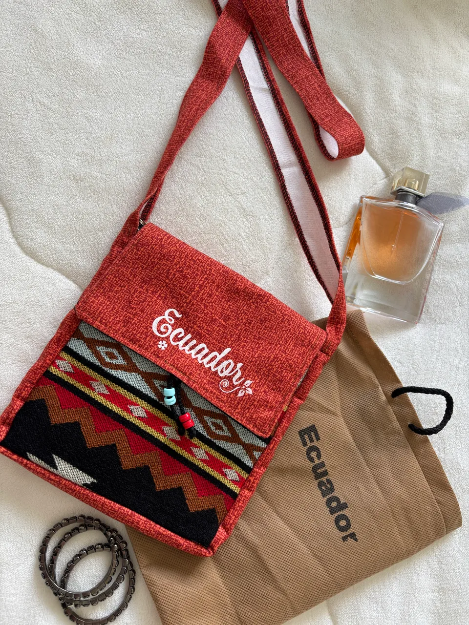 Linda bolsa lateral de artesanato Equatoriano, com material bordado. Super leve. Forrado e macia. Com fechamento e zíper e velcro. Detalhes que celebram a cultura do Equador.