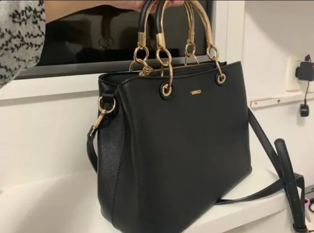 Apresentamos a bolsa média preta perfeita para o seu dia a dia! Com design elegante e sofisticado, essa bolsa é ideal para carregar seus pertences com estilo. Detalhes em dourado adicionam um toque de glamour. Uma peça essencial para complementar seu visual!