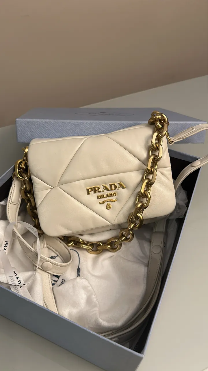 Bolsa Prada Patchwork System Bag, modelo atual, Chip, acompanha caixa e dust bag.