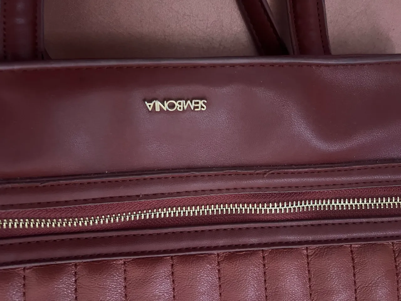 Sembonia é uma marca de artigos de couro da Malásia. A bolsa é de lá e, apesar de ter alça, é ideal para quem gosta de bolsa atravessada mas que tenha um bom tamanho.
