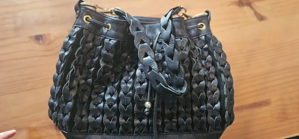 Bolsa de ombro em couro trançado na cor preta, perfeita para o dia a dia. Com um design elegante e atemporal, ela é ideal para carregar seus itens essenciais com estilo.
