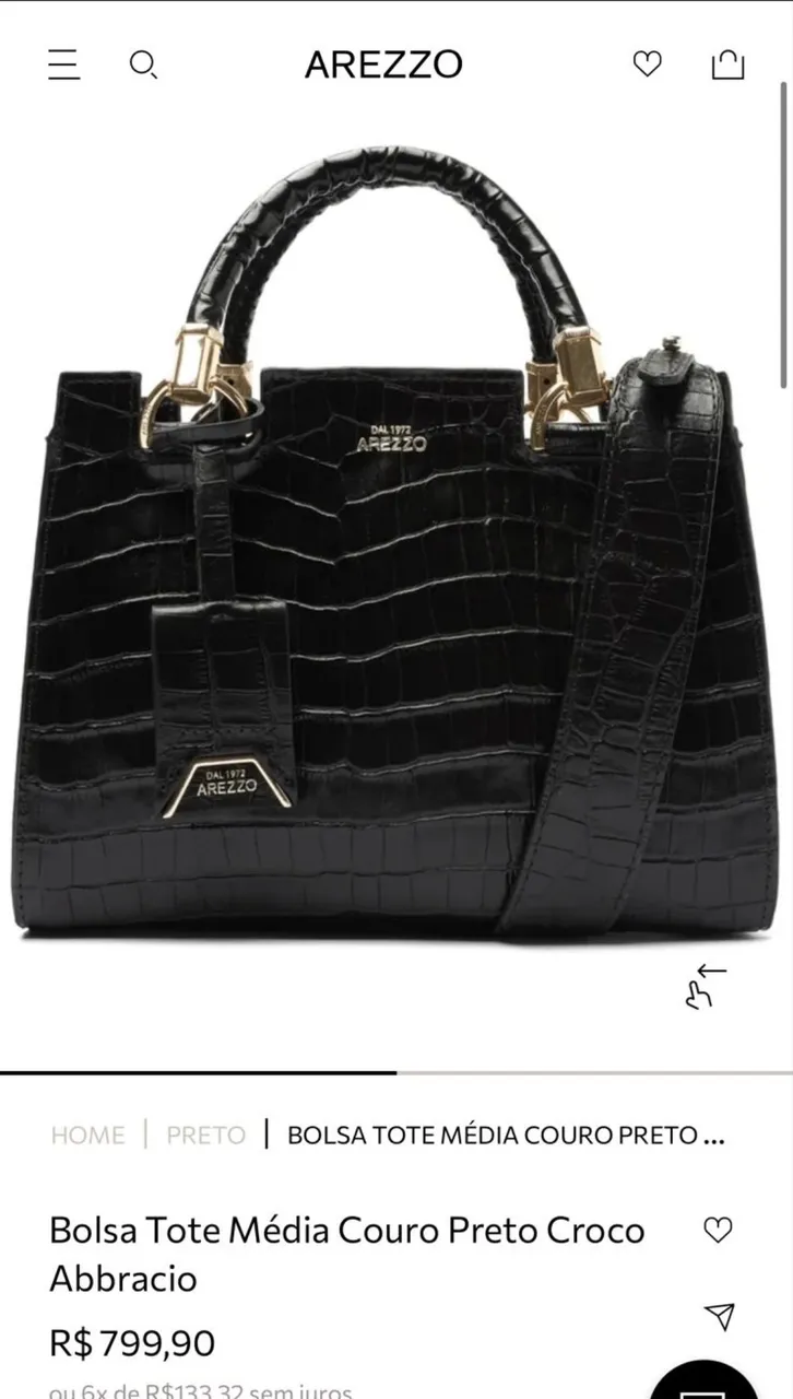 Apresentamos a Bolsa Tote Média de Couro Preto Croco da Arezzo, uma peça que exala elegância e sofisticação. Confeccionada em couro de alta qualidade com detalhe croco, esta bolsa é o acessório perfeito para elevar qualquer look. Com design moderno e atemporal, ela combina estilo e praticidade para te acompanhar em todas as ocasiões. No site está sendo vendida por R$ 799 e aqui vendo pela metade do preço: R$ 350