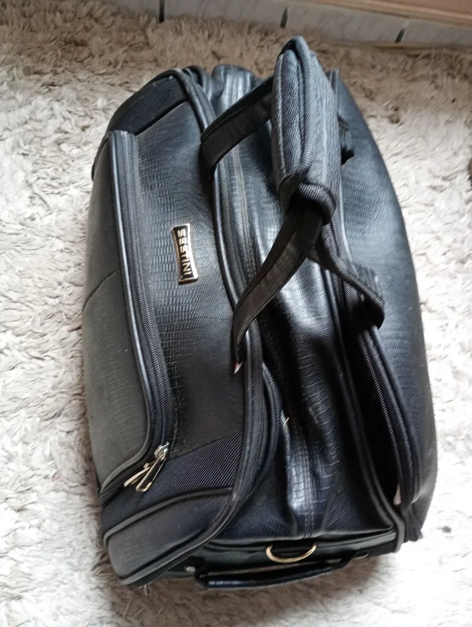 Linda mala de viagem em couro. Executiva. Essa mala possui rodinhas e um acabamento refinado. Paguei 800 reais por ela. Desapegando por esse valor porque por enquanto não estou usando. Retirar em Jurerê Internacional.