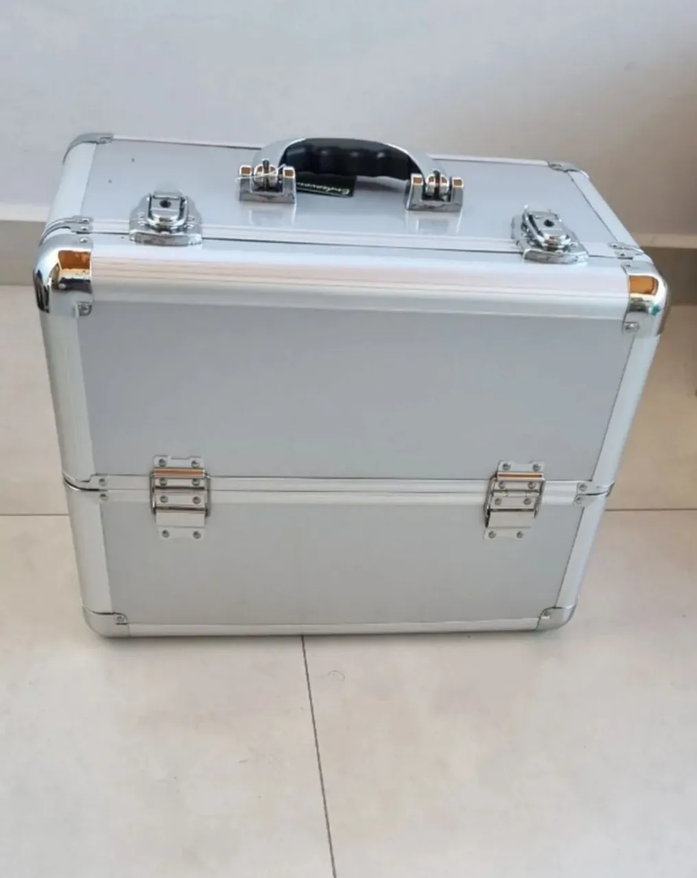 Maleta de maquiagem com design elegante e prático. Essa maleta cinza, é perfeita para guardar maquiagem ou outro produto de sua preferência, as divisórias são removíveis e ajustáveis para sua preferência. além disso, a maleta é resistente e durável, assim como, possui fecho de segurança.