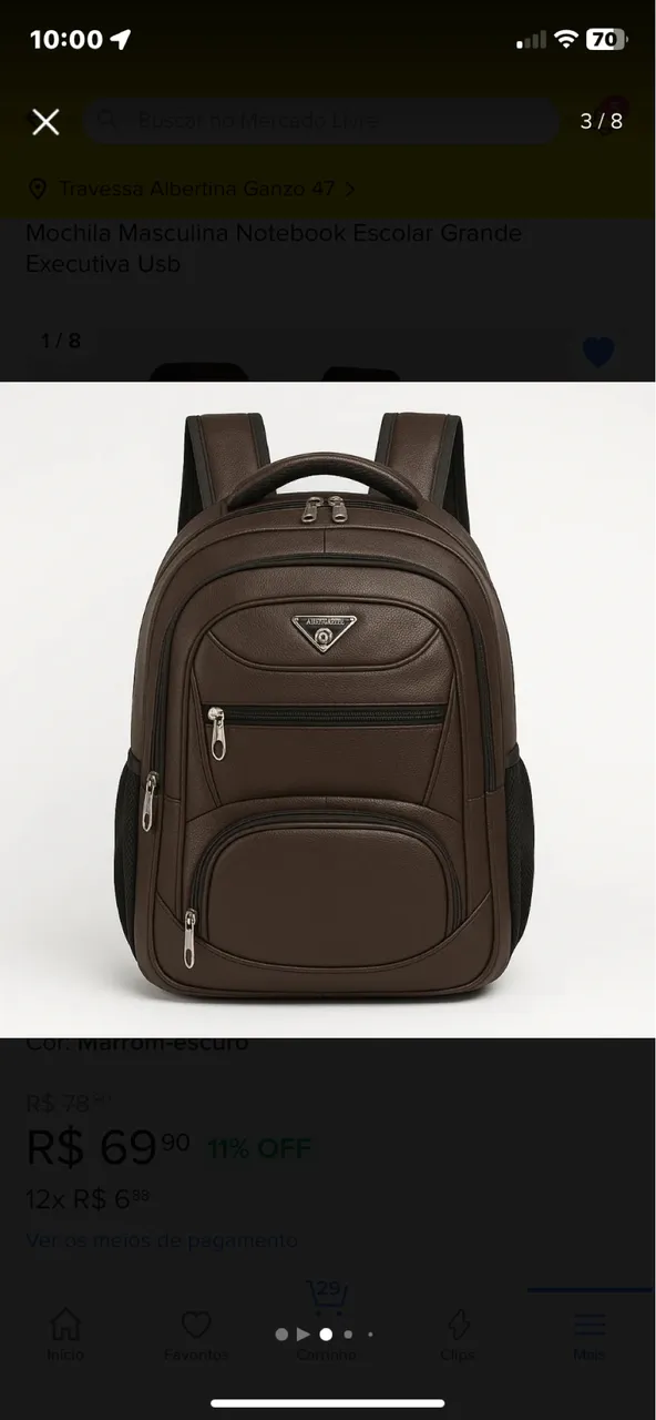 Apresentamos a Mochila de Couro Marrom, a combinação perfeita de estilo e funcionalidade. Com design elegante e compartimentos espaçosos, esta mochila é ideal para o dia a dia, trabalho ou escola. O couro de alta qualidade garante durabilidade e sofisticação. Leve seus pertences com conforto e elegância!