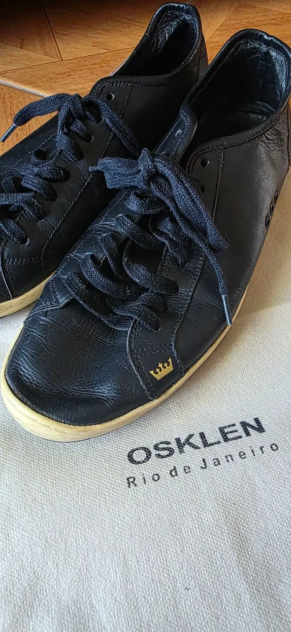 Tenis de couro Osklen, modelo clássico e confortável, ideal para quem busca estilo e qualidade. Perfeito para diversas ocasiões, do dia a dia a eventos casuais. Design atemporal e elegante.
