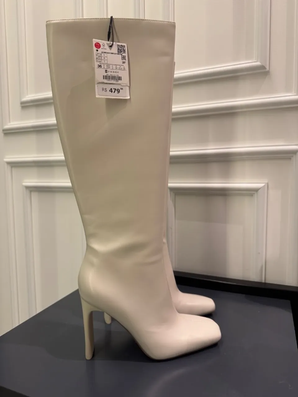 Bota Zara de cano alto na cor off white. Confeccionada em material de alta qualidade, nunca usada (com etiqueta).